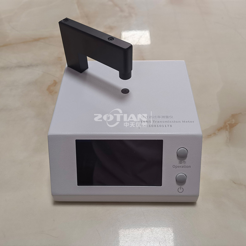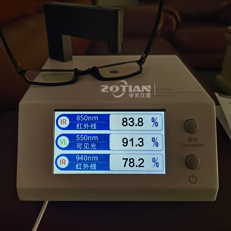 OT-850B鏡片透過率測試儀的測試原理是采用紅外850nm光源,紅外940nm光源和可見550nm光源照射被測透明物質,感應器分別探測三種光源的入射光強和透過被測透明物質后的光強,透過光強與入射光強的比值即為透過率,用百分數(shù)表示。
